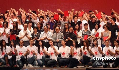 6月19日晚,由中國服裝設(shè)計師協(xié)會在北京舉辦的“人文奧運”時尚成衣發(fā)布會暨“愛心·時尚”賑災(zāi)捐贈會上,“中國模特愛心行動”再掀一個高潮,中國內(nèi)地名模代表們通過現(xiàn)場宣誓,吹響“中國模特愛心行動”全面啟動的號角,“中國模特愛心行動”將在今后定期或不定期的舉辦各種形式的宣傳活動籌集善款,并全部用于資助災(zāi)區(qū)及其它貧困地區(qū)的兒童教育事業(yè)。中國扶貧基金會收到全額款項后,將根據(jù)中國服裝設(shè)計師協(xié)會職業(yè)時裝模特委員會的意愿,點對點落實為災(zāi)區(qū)小學(xué)建立圖書室、電腦房等。圖為中國時裝設(shè)計師、模特以及中國服裝業(yè)內(nèi)人士一起參加愛心行動啟動。中新社發(fā) 錢興強 攝