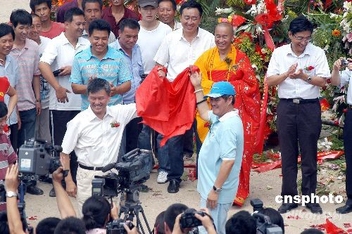7月28日,籌備多時的趙本山新戲《關東大先生》,在關東影視城正式舉行開機儀式,屆時,趙本山將攜劇中男一號、愛徒張小飛及劇中另外3位女主角陳美心、于月仙和吳一迪一起閃亮登場!多l(xiāng)村愛情》中的“劉大腦袋”、本山公司的副總裁劉流也會在劇中出演“哈貝勒”這個重要角色。中新社發(fā) 文契 攝