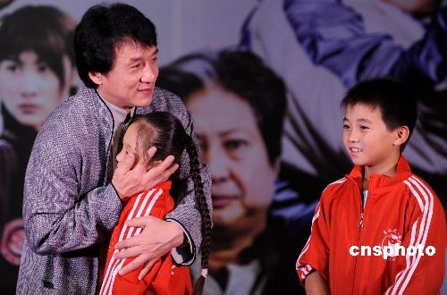 圖:成龍愛撫武術(shù)電影中的小演員
