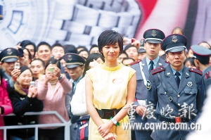 和郭富城上次來渝參加活動(dòng)一樣,昨天下午,解放碑中心到郵局一段,被主辦方用鐵柵欄圍了起來,柵欄外的粉絲擠得水泄不通。不過老徐并沒有像某些明星一樣耍大牌,而是穿著一身無袖金色小禮服準(zhǔn)時(shí)出現(xiàn)在現(xiàn)場,在10℃的低溫下赤膊上陣。粉絲們沒有上次郭天王來時(shí)聲嘶力竭的吶喊,倒是響起了各種評頭論足的聲音,大家最關(guān)注的是“徐靜蕾冷不冷”,當(dāng)然也有一些大媽級的業(yè)余“粉絲”頗有些失望地表示,“完全是個(gè)小女孩兒嘛!”