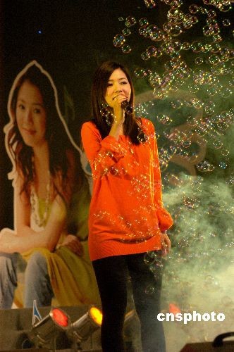12月26日晚,臺灣歌手侯湘婷在江蘇連云港市黃海影劇院舉行歌友會。她靚麗的外表、甜美的笑容給歌迷帶來《曖昧》、《我是一只魚》、《冷戰》等歌曲,讓歌迷們大呼過癮,臺下的三千多歌迷們的情緒也隨之波動起伏,場面異常火爆。中新社發 王春 攝