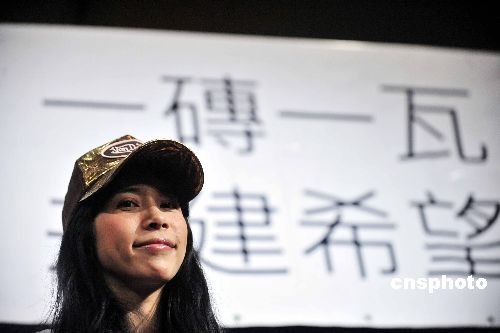 三月四日,香港歌手莫文蔚在仁人家園舉行的記者會上呼吁,賑災(zāi)除了捐錢,年輕人還應(yīng)該捐時間和力氣。國際非牟利組織仁人家園當(dāng)天在港宣布,在全球招聘五百義工,幫助四川災(zāi)區(qū)七百個受災(zāi)家庭重建家園。中新社發(fā) 譚達明 攝