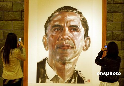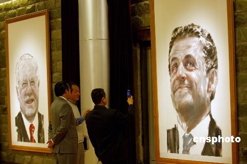 4月7日,為期一個(gè)月的“通往倫敦·20國(guó)集團(tuán)峰會(huì)——于成松作品展”正在中國(guó)北京橋藝術(shù)中心展出。本次作品展所展出的23幅作品,均為出席20國(guó)集團(tuán)倫敦峰會(huì)領(lǐng)導(dǎo)人的中國(guó)畫(huà)肖像,由知名畫(huà)家于成松以獨(dú)特的中國(guó)畫(huà)水墨藝術(shù)形式創(chuàng)作。中新社發(fā) 鄭雄增 攝