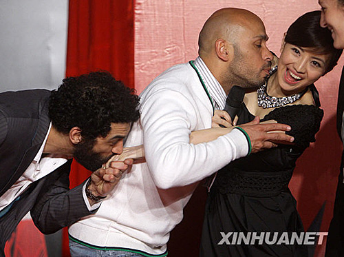 4月9日,法國電影《孤獨(dú)二兄弟》的導(dǎo)演兼主演、法國家喻戶曉的笑星組合朗茲·貝迪亞(左)和埃里克·朱多爾(中)在接受采訪時(shí)逗樂。當(dāng)日,由中國國家廣播電影電視總局、法國駐華大使館等單位共同主辦的“2009中法文化交流之春暨第六屆法國電影展映活動(dòng)”在北京開幕,該活動(dòng)將向中國觀眾展現(xiàn)當(dāng)代法國藝術(shù)舞臺(tái)的活力和創(chuàng)造力,為中法兩國藝術(shù)家提供交流的機(jī)會(huì)。邢廣利 攝