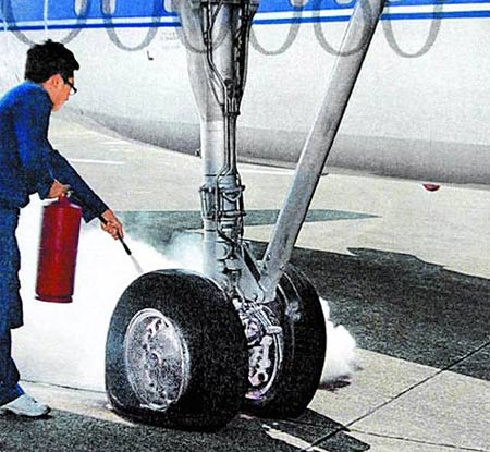 2009/11/01 FK-5003執行馬英九座機任務,在臺中清泉崗基地落地后滑行,右主輪煞車盤過熱,導致來令片及輪胎損傷熱熔并冒煙起火。