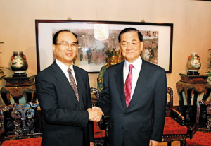 “歡迎你們來臺灣!”在會見中,連戰主席對許勤一行訪臺表示歡迎,并請許勤轉達他對王榮書記的問候。連戰主席親切地與深圳分團成員一一握手和合影留念,并回憶了上次訪問深圳的愉快經歷,表示雖然訪問深圳只有一次,時間很短,但深圳給他留下了深刻而美好的印象。