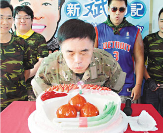 據報道,郝龍斌22日換上迷彩服與網友粉絲PK漆彈對戰,同時也度過58歲生日;粉絲團特別安排了兩位女兵,送上“蔥滿勝蒜”蛋糕,象征市長選舉“充滿勝算”。郝龍斌開心許下三個愿望:第一是風調雨順,第二是希望花博圓滿成功,第三個愿望,“大家都知道,所以不說了!(應指連任成功)”