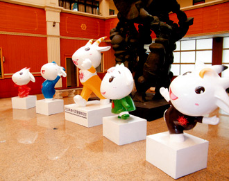 “好可愛喔!”這五只廣州亞運吉祥物,每只高約一點七公尺至兩公尺,昨天上午運送至桃園縣議會時,吸引不少議會員工的目光;據了解,這五只羊造價近六十萬元新臺幣。