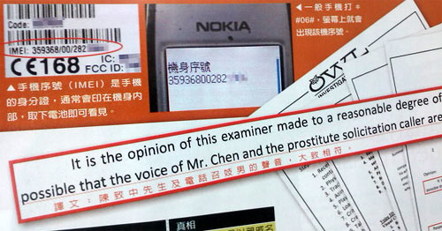 中新網(wǎng)9月8日電 陳水扁之子陳致中到底有沒有召妓?8日出刊的《壹周刊》提出“鐵證”繼續(xù)追打,稱美國權(quán)威機(jī)構(gòu)聲紋比對(duì)結(jié)果顯示,“召妓男”的電話錄音和陳致中“聲紋相符”;更勁爆的是,該刊還在訴訟資料中發(fā)現(xiàn),陳致中和“召妓男”都使用同一支手機(jī)。對(duì)此,陳致中則強(qiáng)調(diào)若有證據(jù)應(yīng)提到法院上作攻防,而不是在媒體上放話。