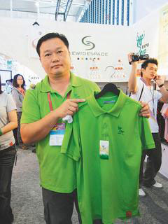 據報道,紡合實業經理胡詠欽說,世博志愿者穿的小綠衣是百分之百由臺灣廠商研發的FLYCOOL布料制成的;這款布料的纖維以植物做成,不穿以后埋在土里半年內可自行分解,非常環保,更重要的是,布料混合了數種礦石纖維,穿在身上體感溫度至少低了1、2度,活動以后會再降三度,“越穿越涼快”。