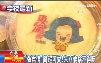 朱立倫變身可愛造型的豆沙餅,一下是“OPEN倫”,一下又是“乖乖倫”,還帶抹可愛的小腮紅,還有“面速立達倫”和“兩撇胡子的波爾倫”,選戰秘密武器限量“車倫餅”首度開賣,大伙搶翻了。