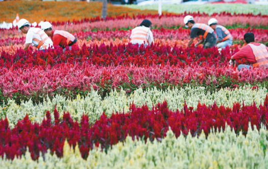 中新網(wǎng)10月9日電 據(jù)臺灣《聯(lián)合報》報道,今天是臺北花博會開放測試第一天,圓山公園展區(qū)最大賣點之一正是面積超過七公頃的花海。超過625萬株花卉“一波未平一波又起”分布展區(qū)各處,不論是花卉種類、栽種密集度及面積都稱霸花博四大展區(qū),其中地景花海及爭艷館的“七道彩虹”最值得一看。
