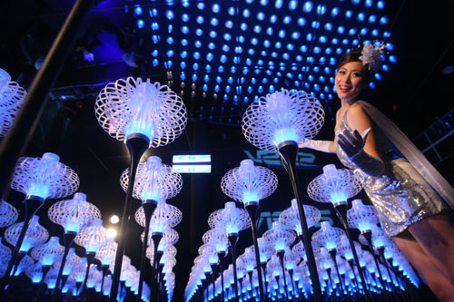 臺北花博會第一階段測試結束,共吸引將近8萬2千名民眾、志工參與測。圖為新生公園夢想館展演電子花朵為主題的“花械花開”。圖片來源:“中央社”