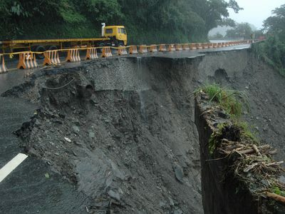 遭遇豪雨的蘇花公路遇雨則坍,南方澳到東澳間多處坍方。臺灣“災害應變中心”表示,一輛弘泰旅游公司載運大陸觀光客的游覽車在東澳受困,疑被落石擊中,大陸導游及司機困在變形車體內,深夜確定2人死亡,其他旅客無恙;另傳有一輛創意旅游公司的游覽車,搭載廣東團共19人失聯。