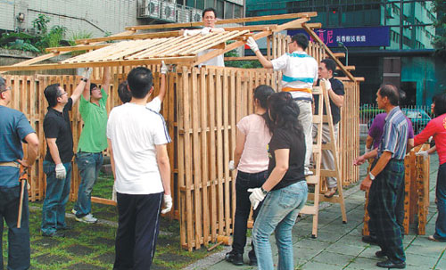 中新網10月27日電 據臺灣《聯合報》報道,臺灣房價居高不下,許多人被迫一生當“房奴”。臺藝術家盧建銘、許淑真要提供平民技術,示范用25分鐘蓋好6坪(1坪約是3.3平方米)木房,把建屋權從建商交還一般人,也讓房子從“私人昂貴商品”還原成“眾人共生共食處所”,這也將是臺灣第一個“現場演出”的建屋行動。