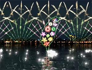 11萬發煙火中尤以大稻埕煙火將施放的“臺灣百花圖”難度最高,施放過程中,臺灣圖樣于水中慢慢站立的意象表現,堪稱是世界獨一無二的臺灣煙火景觀;此外,也將有2250顆連續施放、在空中持續燃燒達40秒的“紅燈籠煙火”,及代表世界五大洲“心連心”的特殊高空煙火,“彩花瀑布”等精彩絕倫的煙火景象。
