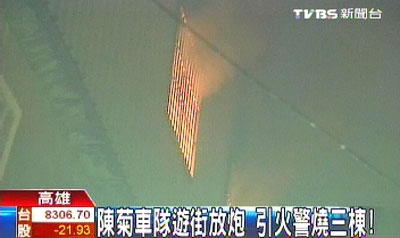 陳菊車隊高雄縣掃街 燃放炮竹燒壞三間民宅(圖)