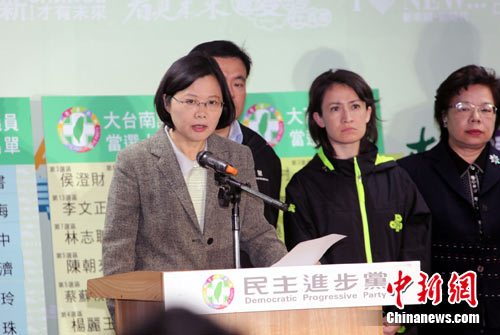 中新網11月27日電 臺灣“五都”市長選舉選舉初步結果27日晚間陸續揭曉。民進黨新北市長參選人蔡英文晚間承認敗選。聽見蔡英文的“落選感言”,臺下民眾高喊“選總統”。