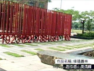 中新網11月26日電 據臺灣東森新聞報道,臺灣花蓮一名藝術創作者黃清輝,結合地球村的概念創作出名稱“條形碼叢林”的紅黑相間裝置藝術。