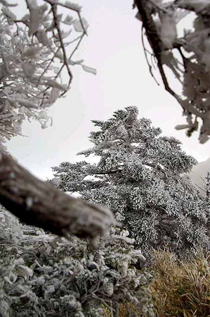 寒流籠罩臺島:合歡山出現霧淞 猩猩取暖(組圖)