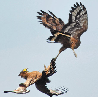 墾丁上空大冠鷲迎春 空中上演“翻滾”調情(圖)