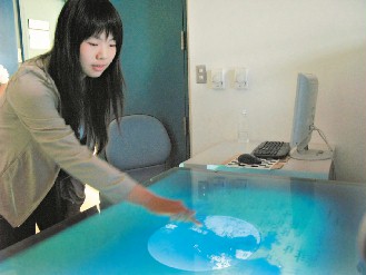 該研究團(tuán)隊(duì)設(shè)計(jì)的指觸顯微桌同時(shí)具有指觸和顯微兩種功能,透過投影機(jī)和攝影機(jī)的運(yùn)用,把桌子變成顯示屏,使用者直接用手指直接觸動(dòng)操控,不再需要實(shí)體的鍵盤或鼠標(biāo)。