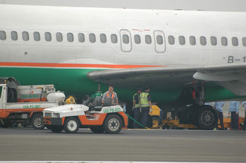 據(jù)“中央社”報(bào)道,這架BR-17913班次MD-90型接駁機(jī)上午八時(shí)四十五分,搭載三十六名乘客從桃園飛往高雄,原定上午九時(shí)二十分抵達(dá)高雄,機(jī)長(zhǎng)起飛后發(fā)現(xiàn)右翼輪胎有響聲,懷疑破胎,于是緊急通知高雄機(jī)場(chǎng)塔臺(tái),展開迫降前置作業(yè)。