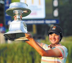 中新網(wǎng)6月10日電 年僅十九歲的臺灣高爾夫球女將曾雅妮,昨天在女子職業(yè)高爾夫四大賽之一的麥當(dāng)勞美國LPGA錦標(biāo)賽中擊敗瑞典好手霍斯,贏得生涯第一座美巡賽冠軍,也成為這項大賽歷來最年輕的冠軍得主。