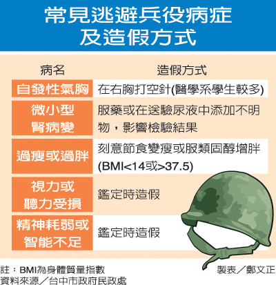 一位曾參與役男體檢的醫師說,體檢過程很嚴格,就算檢查出蛋白尿也不能確定免役,醫師會要求役男當場解尿復驗,接著還要抽血檢驗,如果還有問題,最后還得以直徑0.1公分的針頭穿刺腎臟,取得切片組織,在電子顯微鏡下確認腎病變,才能取得免役資格;不少“假仙”的役男一聽到要切片,打退堂鼓的居多。