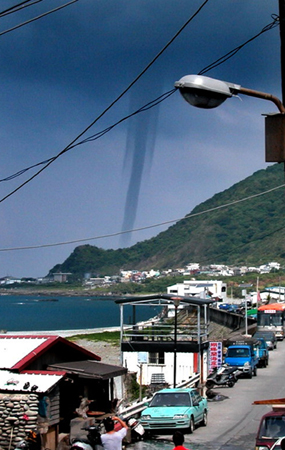 臺東蘭嶼附近海域,7月底出現水龍卷,如圖一條巨大水柱直沖天際景象壯觀,水龍卷從蘭嶼機場往漁人部落移動,八分鐘后消失。記者陳明成/攝影