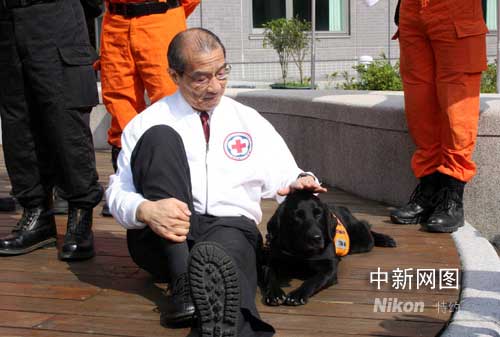 組圖:臺(tái)灣紅十字組織為即將入川的救援隊(duì)授旗(2)