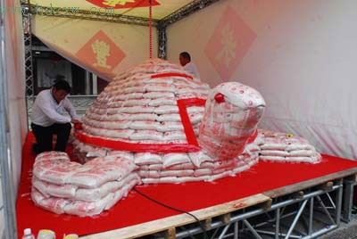 泉州天后宮文物保護管理處副主任何振良說,繼去年澎湖“乞龜”祈福的民俗表演首次在泉州天后宮展現后,今年元宵期間澎湖“乞龜”將再次參加泉州天后宮的鬧元宵活動。去年的那只“米龜”,由1200袋平安米做成,重達6000公斤,今年的這只“米龜”更大,將由2000袋平安米制作而成,重達1萬公斤。正月初十左右,來自澎湖縣的“米龜”制作師傅將到達泉州,開始制作“米龜”,正月十三左右制作完成。2月22日(正月十六)上午,第七屆泉州“海絲”文化節組委會將在泉州天后宮廣場舉行“泉州·澎湖乞龜民俗文化活動”揭彩儀式。