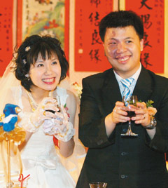 包括蕭萬長、郝龍斌等政界人士,11日也來現(xiàn)場“沾喜氣”。自稱是“專業(yè)證婚人”的馬英九,擔任證婚人。經驗十足的他,證婚不忘宣揚政策,要求兩人一定要生足三個;因為只要是臺北市民生的第三個孩子,市政府將補助尿布錢。