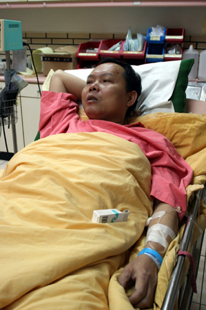 獲救船員彭伯武躺在病房上,臉露驚恐,他說,當時風浪大,等到發現不對勁,大家穿上救生衣,還來不及拿多余的東西,船就沉了,全部的人都泡在冰冷的海水,風大浪大,眼睛根本張不開,要不是自己水性好,早就沒命。