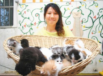 中新網(wǎng)5月21日電 臺灣一位29歲的女研究生徐慈馡念大一時養(yǎng)第一只貓,從此愛貓成癡,如今養(yǎng)了三十只,為照顧“貓咪軍團”,她省吃儉用,貓住套房、吃高級餐,她穿百元平價衣、吃路邊攤,卻無限滿足。