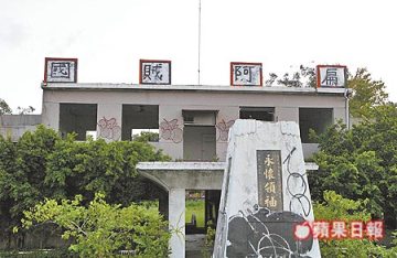 臺軍位于臺北的一處廢棄營區指揮部大樓上標語牌,遭人以油漆寫上“‘國賊’阿扁”。 (圖:臺灣《蘋果日報》)