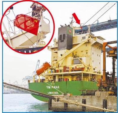 基隆港務(wù)局航政組監(jiān)理科說,“商港法”第25條明定,“船舶入港至出港時,應(yīng)懸掛臺灣旗幟、船籍國國旗與船舶電臺呼號旗。”基隆港務(wù)局表示,“YM FA HA”貨輪主桅懸掛五星紅旗、船尾懸掛塞浦路斯國旗已違反“商港法”。