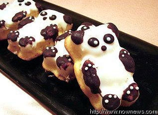 業者說從九月起就開始研發這一款“熊貓蛋糕”,以因應即將來臨的“熊貓熱”。業者說,可愛的熊貓造型,黑跟白的部分都是用瑞士來的巧克力,吃起來甜卻不膩,加上上面所黏的椰絲,越咀嚼越香,非常好吃。而且里頭還加了來自瑞士的糖漬柑橘丁,配上一些新鮮柳橙皮,增加果香。讓熊貓蛋糕咬下去口感豐富,一口接一口,細細咀嚼中還可以感受椰絲香氣。
