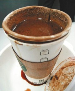 中新網12月11日電 據臺灣《聯合報》報道,有顧客指出在臺灣星巴克購買的咖啡,喝下后感到反胃想吐,咖啡散發惡臭,杯身還軟化變形,事后星巴克坦承咖啡中含有濃縮清潔劑。該顧客要求求償新臺幣300萬。