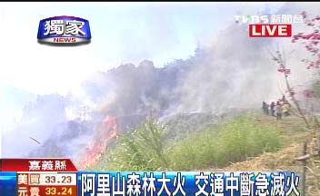 5公頃的林班地,突然發(fā)生大火,導(dǎo)致阿里山公路因?yàn)闈鉄熍c火勢(shì)關(guān)系無(wú)法通行,警消已出動(dòng)直升機(jī),搶救滅火。