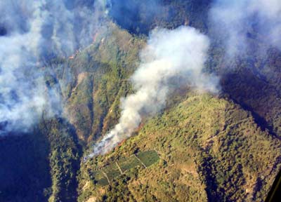 楊宏志說,火勢延燒到阿里山公路71公里處邊坡,只剩余火在竄燒,偶而才會看到火苗,今天早上6時左右,嘉義林管處人員及消防人員就前往現場滅火,空勤總隊也派出4架直升機,積極加入搶救行列,希望上午就能控制火勢。