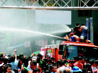 中新網(wǎng)4月13日電 臺灣臺北縣“中和市2009潑水節(jié)”昨天上午在南勢角捷運站盛大登場,民眾拿著水槍、水瓢、水桶到處噴灑開戰(zhàn),臺北縣消防局也調派兩輛消防水車加入戰(zhàn)局,超強水柱掃射現(xiàn)場民眾,讓民眾遇水則發(fā),氣氛夯到最高點,樂到不行。