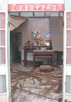 篤信佛教的她說,趕緊回屋,發(fā)現(xiàn)三十坪大的屋內滿目瘡痍,電視、冰箱全倒,杯碗散落一地,亂成一團;“還好客廳供奉的佛祖神像沒有受損”,仍安穩(wěn)坐在供桌上。“能逃過一劫,真是神明有保佑!”