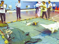 巡防艇率先抵達失事地點,發現海面上泛浮著大片油漬,隨即又看見太陽照映金屬的反射光,于是登上草嶼,尋獲包括未使用過塑料求生艇、駕駛座椅后背墊、疑似機翼、機身蒙皮等大小十多件殘骸,最大件殘骸長寬各約1米。