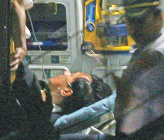 看阿扁臉色很蒼白,高院一度準(zhǔn)備將他送臺大醫(yī)院。法警拿毛毯、枕頭供他休息,救護(hù)員又多次測量他的生理狀況;晚上10時30分,阿扁臉色已漸回復(fù)正常,血壓、血氧、脈搏一切正常,合議庭決定阿扁不送醫(yī),直接還押看守所,由看守所醫(yī)護(hù)室注意。阿扁即躺在救護(hù)車上、鼻上插著呼吸管回看守所。