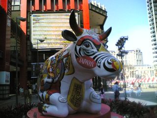 今年生肖牛年,搭配牛年,臺北市文化局協辦的“2009臺北奔牛節、奔牛入市、放養 ”活動.由兩只牛拼奏成一頭奔跑的牛藝術,另外全世界最大的牛,長、高四米六、兩米五,則現身在信義商圈,藝術家創作的主軸為平安牛,上頭畫滿臺灣傳統的民俗圖騰。國際文創執行長陳秉鴻表示,臺北市是全世界第六十五個城市舉辦奔牛節活動,為了凸顯臺灣文化,臺北奔牛節充滿亞洲創意元素。