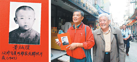 廈門76歲的黃燦輝(圖右)17日金門尋親,帶著60幾年前的弟弟黃燦煌老照片(圖左),盼有生之年能續(xù)手足情。 來源:臺(tái)灣《聯(lián)合報(bào)》