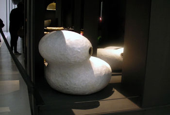 設計師廖柏晴搜集了2009年臺灣風災的大量漂流木,以書法寫作行云流水的姿態為靈感,在漂流木上涂上昂貴的漆料,做成有現代感的古董家具,在會場中是受關注度最高的展品之一。