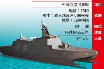 對于研發新型近岸巡邏艦,海軍司令部表示,海軍希望建立“不對稱戰力”,因此一直朝小而精、小而巧、小而強的方式,籌建現代化防務武力,以滿足臺澎防衛作戰的需求。