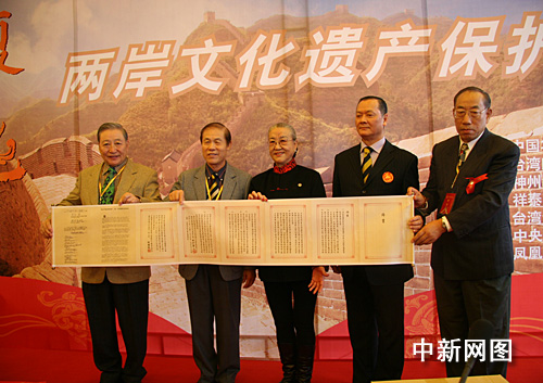中新網(wǎng)11月9日電 (吉翔)由中國(guó)華夏文化遺產(chǎn)基金會(huì)主辦的首屆海峽兩岸文化遺產(chǎn)保護(hù)論壇9日在北京開幕,多名國(guó)共高級(jí)將領(lǐng)后代發(fā)表了兩岸文化遺產(chǎn)保護(hù)的共同宣言,以召開展兩岸民間文化遺產(chǎn)保護(hù)領(lǐng)域的實(shí)體性合作。